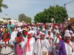 La marche, partie de la mairie devant la place Mansour Bouna Ndiaye, a pris fin devant la mosquée de la Gare où les responsables locaux ont livré de vibrants discours. Pancartes brandies haut, slogans répétés en chœur, la foule a tenu à exprimer son indignation face à la détention prolongée de celui qu’ils considèrent comme « le digne fils du Ndiambour ».